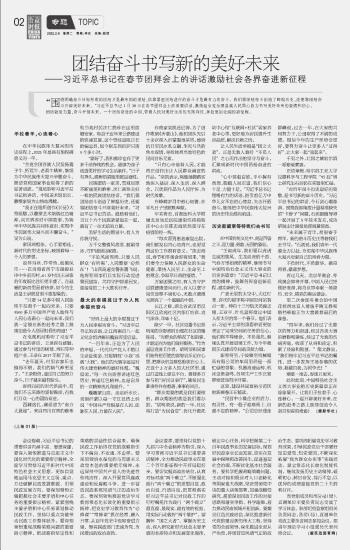 團(tuán)結(jié)奮斗書寫新的美好未來——習(xí)近平總書記在春節(jié)團(tuán)拜會(huì)上的講話激勵(lì)社會(huì)各界奮進(jìn)新征程