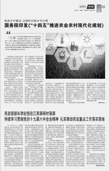 民政部部長(zhǎng)李紀(jì)恒在江西調(diào)研時(shí)強(qiáng)調(diào)持續(xù)學(xué)習(xí)貫徹黨的十九屆六中全會(huì)精神 扎實(shí)推動(dòng)民政重點(diǎn)工作落實(shí)落地