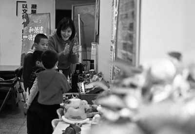 2021年12月4日,張潔(右一)在“村童媽媽聚樂部”教小朋友演唱歌曲《愛的鼓勵(lì)》(新華社記者 林善傳/攝)