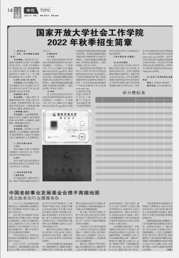 國家開放大學社會工作學院2022年秋季招生簡章