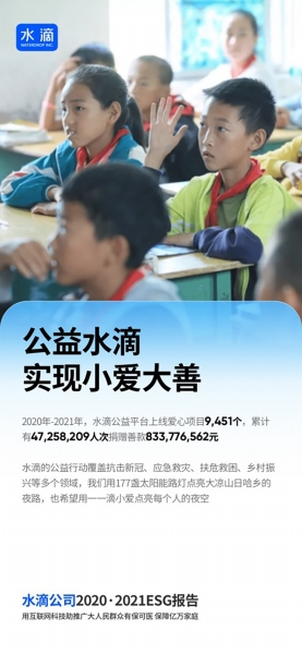 7月29日,水滴公司對(duì)外發(fā)布2020·2021ESG報(bào)告,報(bào)告從公司治理、社會(huì)責(zé)任、科技與產(chǎn)品、行業(yè)價(jià)值鏈、職場(chǎng)建設(shè)、綠色發(fā)展等多議題領(lǐng)域展開,披露了水滴公司2020年—2021年的ESG表現(xiàn)。 《報(bào)告》顯示,2020年1月1日至2021年12月31日間,水滴公益平臺(tái)共計(jì)上線9451個(gè)項(xiàng)目,覆蓋抗疫行動(dòng)、應(yīng)急救災(zāi)、鄉(xiāng)村振興等多個(gè)議題,累計(jì)募得善款833776562元,捐贈(zèng)47258209人次。 2020年新冠疫情之初,水滴公益就聯(lián)合20多家公募機(jī)構(gòu),共籌集抗疫救助款超6500萬元,用于采購(gòu)醫(yī)用口罩、防護(hù)服等防疫等物資。同期,水滴公益聯(lián)合中國(guó)社會(huì)福利基金會(huì)發(fā)起“逆行者守護(hù)計(jì)劃”公益項(xiàng)目,為不幸感染新型冠狀病毒肺炎/因抗擊新冠因公殉職的疫情防護(hù)一線人員提供救助金/慰問金。 重大災(zāi)害發(fā)生時(shí),水滴公益可以同步啟動(dòng)公益項(xiàng)目,整合各方力量,發(fā)放救災(zāi)物資,保障當(dāng)?shù)鼐用駷?zāi)后生活生產(chǎn)恢復(fù),2021年河南特大暴雨水滴公益上線的系列賑災(zāi)項(xiàng)目共計(jì)籌集善款1680.84萬元,幫助轉(zhuǎn)移、安置受災(zāi)群眾20.9萬余人次;面對(duì)貧困大病家庭的就醫(yī)難題,水滴公益推出“鯨魚寶貝計(jì)劃”幫助公募基金會(huì)為0-18歲大病患兒籌集了超過1.5億元醫(yī)療資金,近484萬愛心網(wǎng)友參與,1795個(gè)患兒家庭從中受益;為了給予患者及家庭經(jīng)濟(jì)以外的支持,水滴公益建立“水滴公益愛心小家”,為異地就診的大病患者提供住宿、休息場(chǎng)所和活動(dòng)空間,已在全國(guó)7個(gè)城市建成30多個(gè)。 《報(bào)告》顯示,在助力鞏固拓展脫貧攻堅(jiān)成果同鄉(xiāng)村振興有效銜接方面,“水滴鄉(xiāng)村醫(yī)務(wù)室”項(xiàng)目,已在河北張家口、新疆和田墨玉、云南昭通、貴州思南、河北承德和甘肅酒泉等地區(qū)建成64個(gè)醫(yī)務(wù)室,受益人數(shù)超15萬。在此基礎(chǔ)上,水滴將推出“水滴鄉(xiāng)村醫(yī)務(wù)室百縣千村公益計(jì)劃”,到2030年,將在全國(guó)100個(gè)縣落地1000個(gè)醫(yī)務(wù)室,為鄉(xiāng)村振興、健康中國(guó)貢獻(xiàn)更多力量。 水滴公司創(chuàng)始人兼CEO沈鵬表示,希望與所有員工在同樣的使命感和社會(huì)責(zé)任感驅(qū)動(dòng)下,主動(dòng)解決社會(huì)問題。“我們一起秉持著負(fù)責(zé)任、可持續(xù)的價(jià)值觀,將ESG(環(huán)境、社會(huì)與公司治理)全面融入公司發(fā)展的血液,通過對(duì)社會(huì)問題的深入關(guān)切和分析,以科技的力量,共同為構(gòu)建更美好的社會(huì)而不懈努力?!保ㄍ跤拢?/p> |