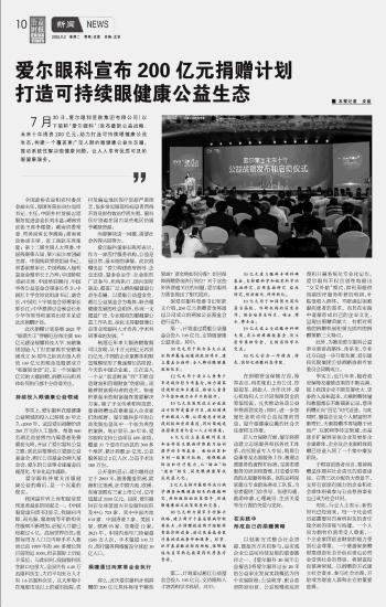 愛(ài)爾眼科宣布200億元捐贈(zèng)計(jì)劃 打造可持續(xù)眼健康公益生態(tài)