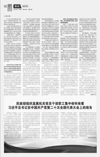 民政部組織直屬機(jī)關(guān)黨員干部職工集中收聽收看習(xí)近平總書記在中國共產(chǎn)黨第二十次全國代表大會上的報告