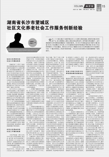 湖南省長沙市望城區(qū) 社區(qū)文化養(yǎng)老社會工作服務(wù)創(chuàng)新經(jīng)驗