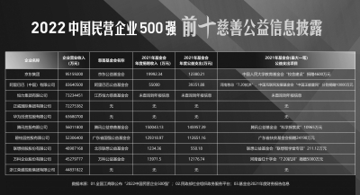 ■ 本報(bào)記者 張明敏 黨的二十大報(bào)告指出,引導(dǎo)、支持有意愿有能力的企業(yè)、社會(huì)組織和個(gè)人積極參與公益慈善事業(yè)。 今年9月,全國(guó)工商聯(lián)發(fā)布的“2022中國(guó)民營(yíng)企業(yè)500強(qiáng)”調(diào)研報(bào)告顯示,500強(qiáng)企業(yè)營(yíng)業(yè)收入總額為38.32萬(wàn)億元,增長(zhǎng)9.13%。盡管企業(yè)經(jīng)營(yíng)指標(biāo)有所波動(dòng),但在鞏固脫貧成果改善民生保障、促進(jìn)產(chǎn)業(yè)興旺帶動(dòng)農(nóng)民增收方面,民營(yíng)企業(yè)表現(xiàn)仍舊十分顯著。 記者通過(guò)對(duì)榜單排名前10的企業(yè)進(jìn)行梳理發(fā)現(xiàn),10家企業(yè)分別來(lái)自互聯(lián)網(wǎng)、化工能源、房地產(chǎn)、有色金屬、電子設(shè)備制造等行業(yè)。在踐行社會(huì)責(zé)任方面,七家企業(yè)設(shè)有基金會(huì),三家企業(yè)公益平臺(tái)入選民政部首批互聯(lián)網(wǎng)公開(kāi)募捐信息平臺(tái)。 為更好地展現(xiàn)民營(yíng)企業(yè)履行社會(huì)責(zé)任面貌,呈現(xiàn)覆蓋面廣、方式多元、可供參照的民企公益案例,《公益時(shí)報(bào)》特推出《中國(guó)民營(yíng)企業(yè)履責(zé)進(jìn)行時(shí)》專題策劃,從企業(yè)參與慈善途徑及方向、捐贈(zèng)額度、公益項(xiàng)目、可持續(xù)發(fā)展等角度深入剖析,同時(shí)通過(guò)相關(guān)采訪展現(xiàn)民營(yíng)企業(yè)履責(zé)現(xiàn)狀及特點(diǎn),運(yùn)用榜樣力量帶動(dòng)更多民營(yíng)企業(yè)專業(yè)、規(guī)范、高效履行企業(yè)社會(huì)責(zé)任。 榜單前十中七家設(shè)有基金會(huì) 三家入選互聯(lián)網(wǎng)公開(kāi)募捐信息平臺(tái) 記者通過(guò)檢索10家企業(yè)官網(wǎng)及中國(guó)社會(huì)組織政務(wù)服務(wù)平臺(tái)發(fā)現(xiàn),“2022中國(guó)民營(yíng)企業(yè)500強(qiáng)”前十名有七家設(shè)有企業(yè)基金會(huì),三家入選首批互聯(lián)網(wǎng)公開(kāi)募捐信息平臺(tái)。具體包括,京東集團(tuán)設(shè)立的京東公益基金會(huì)、阿里巴巴集團(tuán)設(shè)立的阿里巴巴公益基金會(huì)、恒力集團(tuán)設(shè)立的江蘇恒力慈善基金會(huì)、騰訊集團(tuán)設(shè)立的騰訊公益慈善基金會(huì)、碧桂園設(shè)立的廣東省國(guó)強(qiáng)公益基金會(huì)、聯(lián)想控股設(shè)立的北京聯(lián)想公益基金會(huì)以及萬(wàn)科設(shè)立的萬(wàn)科公益基金會(huì)。 其中,騰訊公益、阿里巴巴公益及京東公益平臺(tái)于2016年入選民政部首批互聯(lián)網(wǎng)公開(kāi)募捐信息平臺(tái)。 數(shù)據(jù)顯示,截至2022年5月18日,騰訊公益平臺(tái)累計(jì)籌款超過(guò)180億元,用戶捐款超過(guò)6億人次,幫助逾11萬(wàn)個(gè)公益項(xiàng)目籌集資金。 2021年全年,阿里巴巴公益平臺(tái)在線公益項(xiàng)目達(dá)2506個(gè),為慈善組織募捐超過(guò)5億元,約7.4億人次參與捐贈(zèng)。 京東公益平臺(tái)以物愛(ài)相連物資募捐系統(tǒng)、暖東公益資金募捐系統(tǒng)等為依托,倡導(dǎo)人人公益。其中,物愛(ài)相連結(jié)合京東商品供應(yīng)鏈、物流供應(yīng)鏈優(yōu)勢(shì),可實(shí)現(xiàn)用戶一鍵捐贈(zèng)、物資直達(dá)受助對(duì)象的效果。截至目前,該平臺(tái)累計(jì)募集物資約為432萬(wàn)件,累計(jì)約296萬(wàn)人次參與募捐。 企業(yè)營(yíng)收持續(xù)增長(zhǎng) 五家公益支出過(guò)億 記者注意到,“2022中國(guó)民營(yíng)企業(yè)500強(qiáng)”榜單共有8602家年?duì)I業(yè)收入5億元以上的企業(yè)參加評(píng)選,入圍門檻達(dá)263.67億元,比上年增加28.66億元。入圍門檻提高的同時(shí),企業(yè)基金會(huì)捐贈(zèng)規(guī)模也大幅提升。 記者通過(guò)對(duì)比上述七家企業(yè)基金會(huì)2021年年報(bào)發(fā)現(xiàn),年度支出過(guò)億的基金會(huì)有五家,分別為騰訊公益慈善基金會(huì)、廣東省國(guó)強(qiáng)公益基金會(huì)、阿里巴巴公益基金會(huì)、京東公益基金會(huì)、萬(wàn)科公益基金會(huì)。其中,有兩家年度支出超10億元,為騰訊公益慈善基金會(huì)和廣東省國(guó)強(qiáng)公益基金會(huì)。 數(shù)據(jù)顯示,2021年,騰訊控股有限公司營(yíng)收56,011,800萬(wàn)元,騰訊公益慈善基金會(huì)接受捐贈(zèng)收入1,500,430,200.13元,公益支出1,459,577,300.39元。其中最大一筆支出用于支持科技發(fā)展——“科學(xué)探索獎(jiǎng)”,金額達(dá)109,650,000.00元,占到總支出的7.06%。 2021年,碧桂園控股有限公司營(yíng)收達(dá)52,306,400萬(wàn)元,國(guó)強(qiáng)公益基金會(huì)捐贈(zèng)收入1,270,805,709.26元,公益支出1,123,876,589.15元,占本年度支出比例為99.77%;重大公益項(xiàng)目支出中,最大一筆為向廣東省扶貧基金會(huì)捐贈(zèng)的241,987,300.00元。 2021年,阿里巴巴(中國(guó))有限公司營(yíng)收83,640,500萬(wàn)元。阿里巴巴公益基金會(huì)捐贈(zèng)收入550,000,000.00元,公益支出393,513,221.88元。同年,阿里巴巴公益基金會(huì)重大公益慈善項(xiàng)目大額支付對(duì)象為向河南省慈善總會(huì)捐贈(zèng)1億元援助水災(zāi)、向中國(guó)互聯(lián)網(wǎng)發(fā)展基金會(huì)“中國(guó)正能量網(wǎng)絡(luò)傳播項(xiàng)目”捐贈(zèng)1億元支持網(wǎng)絡(luò)文化。這兩項(xiàng)大額支出共計(j
