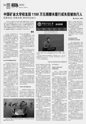 中國礦業(yè)大學校友因1100萬元捐贈未履行成失信被執(zhí)行人
