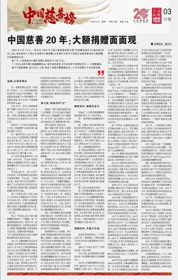 中國慈善20年:大額捐贈面面觀