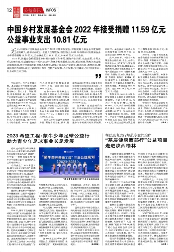 中國鄉(xiāng)村發(fā)展基金會(huì)2022年接受捐贈(zèng)11.59億元 公益事業(yè)支出10.81億元