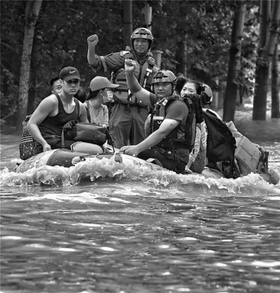 8月3日,河北保定涿州。盡管多日的暴雨按下了“暫停鍵”,可據(jù)氣象預(yù)報(bào)消息,本周五、周六還會(huì)有雷雨天氣。李小榮作為濟(jì)南益民救援隊(duì)現(xiàn)場(chǎng)總指揮,想趕在下雨前,以最快的速度幫助被困群眾完成轉(zhuǎn)移。 截至當(dāng)天,濟(jì)南救援聯(lián)盟的四支救援隊(duì)(濟(jì)南益民救援隊(duì)、濟(jì)南東風(fēng)應(yīng)急救援隊(duì)、濟(jì)南南山應(yīng)急救援隊(duì)、濟(jì)南長(zhǎng)清清山應(yīng)急救援隊(duì))已連續(xù)在涿州西丁小學(xué)附近救援了三天三夜。 水中救援的艱難與有序 涿州市西丁小學(xué)位于城市偏西北位置,附近的北拒馬河上的一座永濟(jì)橋,號(hào)稱涿州“八景之一”。這座始建于明朝萬(wàn)歷年間的聞名遐邇的中國(guó)第一長(zhǎng)石拱橋,見(jiàn)證了這座城市的歷史。 8月3日,濟(jì)南救援聯(lián)盟營(yíng)救的中心是在涿州市東西向的北環(huán)路和南北向的甲秀路之間。這條三公里長(zhǎng)的直線道路上積水接近兩米,只能靠著救援隊(duì)員駕駛沖鋒舟往返,轉(zhuǎn)運(yùn)被困群眾和為留守居民送去救援物資。 救援隊(duì)會(huì)根據(jù)被困小區(qū)居民的需求,采取不同的救援措施,有的居民被送到不遠(yuǎn)處的安置點(diǎn),有的居民會(huì)送到他們想去的地方,至于留下的居民,救援隊(duì)會(huì)根據(jù)實(shí)際需要,為他們送來(lái)各種生活用品和方便食品。周而復(fù)始,沖鋒舟就這樣來(lái)往在水流之中。 “西丁小學(xué)的轉(zhuǎn)移點(diǎn)太遠(yuǎn),進(jìn)去一趟來(lái)回就要將近40分鐘。不少樓房的一二層被淹了?!币宦飞戏e水最深處能淹沒(méi)一個(gè)成年人,救援隊(duì)員們?yōu)榱吮U舷鹌ねР槐粍澠苹蛘咄械?,時(shí)常需要下水探查水情。 在救援中,濟(jì)南益民救援隊(duì)隊(duì)員劉洪亮承擔(dān)著“探路員”職責(zé)?!八軠啙?,里面有各種雜物,先前已有不少救援船只受損,需要進(jìn)行維修。我這下去一趟全部清理好,后面的沖鋒舟也不會(huì)再度受到損壞?!?/p> “往里面坐好,小心一些?!币晃晃涣嘀欣钗锲返木用瘢谡驹谒锏木仍?duì)員協(xié)助下,依次坐到不算寬敞的救生艇上。有的獨(dú)居老人還需要救援隊(duì)員蹚著水背到救生艇上。與此同時(shí),運(yùn)送救援物資的船只抵達(dá)小區(qū),一箱箱面包、方便面和飲用水,也順利送到居民的手中。 當(dāng)永濟(jì)秀園小區(qū)的居民得知益民救援隊(duì)來(lái)自山東濟(jì)南時(shí),充滿深情地拱手說(shuō):“太感謝了!山東濟(jì)南的兄弟們,患難見(jiàn)真情!”周圍的小區(qū)居民也紛紛鼓掌,用一聲聲發(fā)自肺腑的“感謝”,道出了涿州受災(zāi)群眾的心聲。 “這輩子從沒(méi)見(jiàn)過(guò) 這么大的水” “這輩子從沒(méi)見(jiàn)過(guò)這么大的水。”終于乘坐上沖鋒舟的小區(qū)居民王春花對(duì)記者說(shuō)?!耙婚_(kāi)始自己還沒(méi)太當(dāng)回事,可沒(méi)多會(huì)兒就聽(tīng)說(shuō)水已經(jīng)沒(méi)過(guò)人腰了,有的地方水已經(jīng)把一樓都淹沒(méi)了,看了手機(jī)上的視頻,說(shuō)市區(qū)最深的地方,都淹到紅綠燈了。” 7月31日晚,小區(qū)開(kāi)始停水停電。因?yàn)榈貏?shì)較高,66歲的王春花并沒(méi)太過(guò)在意,但從家里窗戶看向外面時(shí),看到滾滾的水流幾乎沒(méi)過(guò)了停放的汽車車頂,才意識(shí)到問(wèn)題嚴(yán)重。當(dāng)她給孩子打電話時(shí),才知道涿州大部分已經(jīng)被洪水淹沒(méi)了。 隨之而來(lái)的是被打亂的生活秩序。“斷水?dāng)嚯?,手機(jī)也快沒(méi)電了,家里也沒(méi)辦法做飯?!笔忻駨垚?ài)陽(yáng)對(duì)記者說(shuō),周末自己在家休息,沒(méi)想到自己被暴漲的洪水“留”在家里,別說(shuō)去單位上班,連基本的生活保障都面臨困難。 由于極端降雨和分泄洪水,河北陸續(xù)啟用了7處蓄滯洪區(qū)。而此次涿州受災(zāi)最為嚴(yán)重。7月29日以來(lái),這座地處京、津、保三角地帶,坐擁小清河、永定河、白溝河、琉璃河、北拒馬河等六條河流的小城,水勢(shì)浩大,情勢(shì)危急。 洪水中傳遞的溫暖 洪水無(wú)情人有情。在滾滾涌動(dòng)的冰冷的洪水中,來(lái)自國(guó)內(nèi)四面八方的救援隊(duì)伍和志愿者,頂風(fēng)冒雨,不顧安危,第一時(shí)間運(yùn)送被困群眾、運(yùn)送救災(zāi)物資,為這座洪水之中的小城,帶來(lái)了令人難以忘懷的溫暖。 “看到這么多救援人員冒著生命危險(xiǎn),為涿州人民受苦受累,我們就算是有一分光就發(fā)一分熱吧!”為救援隊(duì)送來(lái)成箱面包和礦泉水的涿州市民李娜說(shuō)。這幾天不少涿州的熱心市民,紛紛向救援人員和受災(zāi)群眾,捐贈(zèng)生活物資和方便食品,還有的送來(lái)自己親手做好的盒飯。 記者在涿州街頭偶遇一位騎著電瓶車的小伙子,與眾不同的是車前貼著一張寫有“救援幫”“免費(fèi)送人拉貨”的白紙,這位小伙子說(shuō):“主要就是幫忙救援,有的老人孩子走不動(dòng)了,想去哪就給他們帶過(guò)去。昨天還幫著救援隊(duì)帶路,給被困居民送吃的?!?/p> 來(lái)自濟(jì)南的00后路天彪和朋友韓金梁,得知涿州水災(zāi)消息后,駕車前來(lái)參與救災(zāi)志愿行動(dòng),于2日晚9時(shí)抵達(dá)災(zāi)區(qū)?!坝捎谥挥幸惠v轎車,所以我們只準(zhǔn)備了100提水