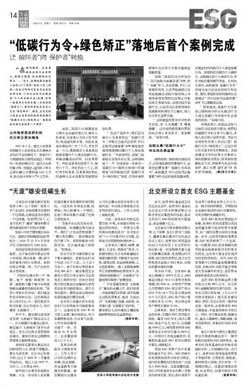 北交所設立首支ESG主題基金