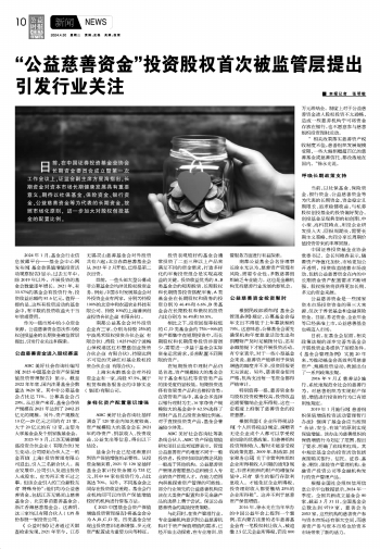 “公益慈善資金”投資股權(quán)首次被監(jiān)管層提出 引發(fā)行業(yè)關(guān)注