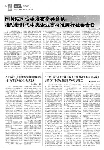 國(guó)務(wù)院國(guó)資委發(fā)布指導(dǎo)意見(jiàn)推動(dòng)新時(shí)代中央企業(yè)高標(biāo)準(zhǔn)履行社會(huì)責(zé)任
