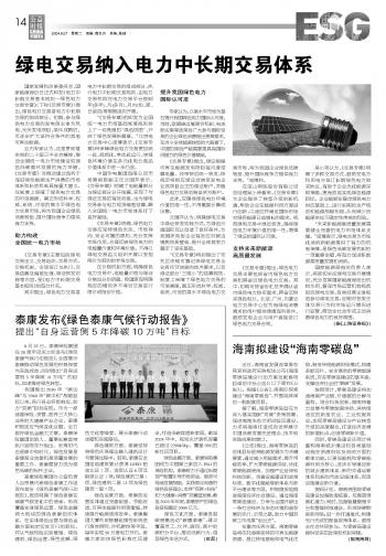 泰康發(fā)布《綠色泰康氣候行動報告》提出“自身運營側(cè)5年降碳10萬噸”目標