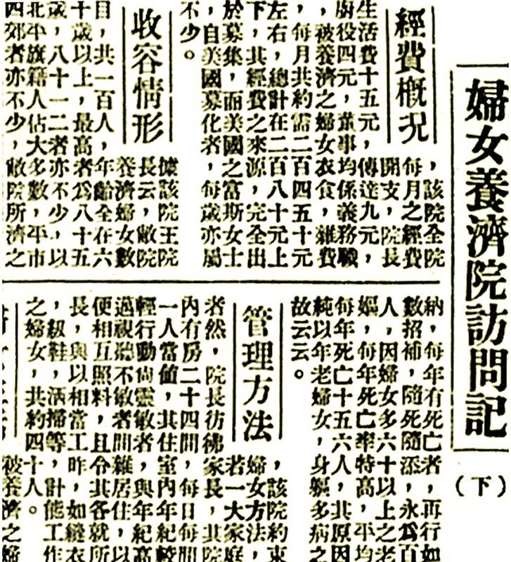 20世紀(jì)30年代,由于養(yǎng)老金和退休制度尚未普遍建立、戰(zhàn)爭及災(zāi)害頻繁,北平市老年貧民的流離失所、孤苦無依逐漸成為一個(gè)社會(huì)問題。如果說以往對于老年貧民的社會(huì)救濟(jì)帶著濃厚的“施惠”“憐民”色彩,那么20世紀(jì)30年代的養(yǎng)老救濟(jì)則開始具備一定的政府責(zé)任意識(shí)。北平市社會(huì)局救濟(jì)院與民間力量發(fā)起的各種養(yǎng)老院所相輔相成,成為由傳統(tǒng)社會(huì)向現(xiàn)代福利社會(huì)轉(zhuǎn)型過程中社會(huì)養(yǎng)老救濟(jì)實(shí)踐不可或缺的參與主體。盡管由于受到社會(huì)歷史條件的局限,這一時(shí)期的養(yǎng)老救濟(jì)事業(yè)還存在著種種缺陷,但其對維持社會(huì)秩序、保障戰(zhàn)亂時(shí)的民生還是有一定的促進(jìn)作用。 官辦救濟(jì)院成立殘老組 與此前主要以民間力量興辦的善堂善會(huì)為主的救濟(jì)設(shè)施構(gòu)成相比,這一時(shí)期由北平市政府主導(dǎo)的救濟(jì)設(shè)施有所增多,同時(shí)面向孤寡老人和殘疾人等社會(huì)弱勢群體的救濟(jì)設(shè)施也開始趨于制度化。 一、殘老組及其養(yǎng)老設(shè)施 1934年6月1日,經(jīng)北平市政府批準(zhǔn),由原第一救濟(jì)院、第二救濟(jì)院、婦女救濟(jì)院、第一習(xí)藝工廠、第二習(xí)藝工廠、乞丐收容所等處改組成立北平市社會(huì)局救濟(jì)院,院址設(shè)于宣外教子胡同前第一救濟(jì)院舊址,由龔齊振任院長。其下設(shè)工務(wù)股、事務(wù)股、營業(yè)股,統(tǒng)一管理北京社會(huì)救助事務(wù),成為北平市政府救濟(jì)機(jī)關(guān)正式建立的標(biāo)志。1934年8月頒布的《北平市社會(huì)局救濟(jì)院章程》規(guī)定了救濟(jì)院救濟(jì)對象,即市內(nèi)貧苦殘老及無依之男女兒童暨不愿為娼之妓女與被虐待之婦孺等。同時(shí),救濟(jì)院將前乞丐收容所改為殘老組和感化組,“以原來之第一救濟(jì)院改為北平市社會(huì)局救濟(jì)總所,附設(shè)收容部,收容部下之感化、殘老兩組,仍設(shè)燕翅樓乞丐收容所原址”,提出“其殘老者養(yǎng)之”,從而與其他救濟(jì)機(jī)構(gòu)得以區(qū)分開來,管理開始趨于規(guī)范。 殘老組收養(yǎng)的老人,或無子女家人,或身體孱弱。為充實(shí)、方便老年人的生活,救濟(jì)院內(nèi)設(shè)教室、工作室、游戲場、寢室、食堂、浴室等生活設(shè)施。衣物上,收容老人衣著以蔽體、保暖、整潔為主。凡收容者,每年發(fā)給單、棉衣各一套,棉鞋、棉被各一雙(套),棉襪一雙;食物層面,則以能適合老年人咀嚼、果腹的清潔食物為主,并注意個(gè)別的營養(yǎng)。早餐有小米粥,午、晚兩餐為玉米面窩頭,佐以菜湯、咸菜。每周一、三、五早餐為白面饅頭,逢年節(jié)增肉食一餐?;疾≌呖梢源竺?、白面調(diào)攝。與此同時(shí),除了涵蓋衣和食的“養(yǎng)”,“醫(yī)”也是老年救濟(jì)必不可少的要素。救濟(jì)院設(shè)有養(yǎng)病室,“每春夏兩季,為全體收容人員預(yù)防白喉、猩紅熱、霍亂等病注射,其有患重病及傳染者,分別送入市立、中央、協(xié)和、傳染等醫(yī)院免費(fèi)診治”。此外,《北平市社會(huì)局救濟(jì)院章程》第二十一條規(guī)定,收容人死亡,由院通知其家屬備棺承領(lǐng);其無家屬者,由院棺殮抬埋?!半S時(shí)電知第一股,然后由該股函請地方法院檢察處派員檢驗(yàn),發(fā)給執(zhí)照,購備棺木,飭役掩埋于本院墓地,樹立石碣”。 二、收養(yǎng)程序 查閱北京市檔案館現(xiàn)存資料可以發(fā)現(xiàn),孤苦無依的老年人經(jīng)由“社會(huì)局票交收容”“各區(qū)屬函送”“慈善團(tuán)體介紹”“自投請求救濟(jì)”“家屬送請教養(yǎng)”五種渠道才可以進(jìn)入社會(huì)局救濟(jì)院。在救濟(jì)收容程序上已具備了現(xiàn)代養(yǎng)老機(jī)構(gòu)的特征和功能。 從北京市檔案館查閱的老年救濟(jì)申請書及批復(fù)的公函件材料來看,1938年1月至12月期間,被收容的老人主要以女性為主,年齡分布最低者是50歲,最長者為80歲?!白酝墩埱缶葷?jì)”者由請投者自行填寫申請書,申請內(nèi)容與實(shí)際情況相符并由社會(huì)局派出巡官核驗(yàn)合格后才能入救濟(jì)院。例如,巡官楊永志奉派調(diào)查崔董氏呈請赴救濟(jì)院收養(yǎng)一案,“遵即赴西城成方街西口外百子胡同五號(hào)系崔董氏之內(nèi)侄董乃溫之家寄居,調(diào)查該氏確系年老貧寒無力生活,情愿入院以求生活舖(鋪)保,亦核對相符理合呈報(bào)”。“各區(qū)屬函送”則由警察局發(fā)送公函致社會(huì)局轉(zhuǎn)交救濟(jì)院,“內(nèi)一區(qū)警察署函送關(guān)(關(guān))田氏年老無依請安置一案到局,訉據(jù)該氏供稱孤身一人,僅有外孫女婿英姓住抽屜胡同曾供給伊生活?,F(xiàn)其停止供給無所依附,請安置?!逼渌樾卧诖瞬辉儋樖?。 三、“教養(yǎng)并施,老有所安”的管理方式 一方面,“救人救徹”這一救助理念開始在政府行動(dòng)中得到一定貫徹而非局限于以往單純發(fā)放衣物、貸款及開設(shè)粥廠和暖廠等此類臨時(shí)性的救助行動(dòng)。如提出“救濟(jì)殘老,并不在提供衣食,使有所終,就算盡了最大的義務(wù),乃是如何使‘殘而不廢’‘老有所安’”等等。 另一方面則是由過去的“重養(yǎng)輕教”逐漸轉(z