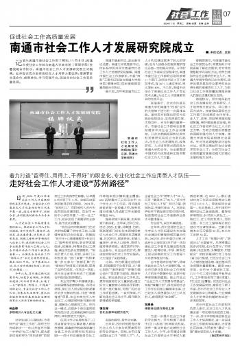 南通市社會工作人才發(fā)展研究院成立