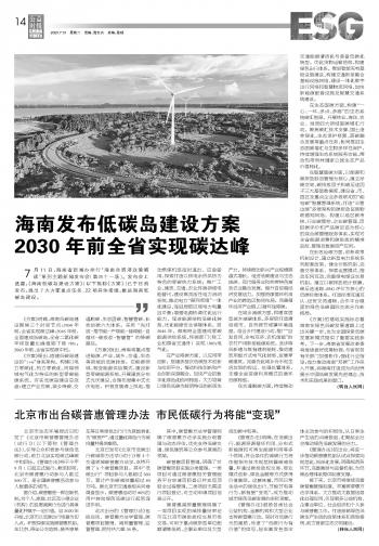 海南發(fā)布低碳島建設(shè)方案2030年前全省實現(xiàn)碳達(dá)峰