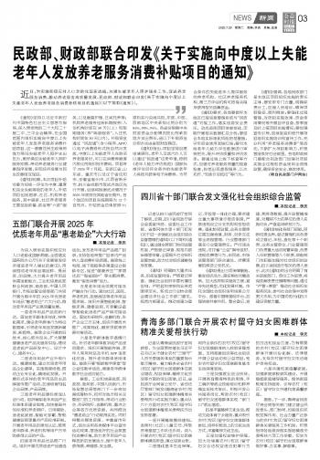 民政部、財(cái)政部聯(lián)合印發(fā)《關(guān)于實(shí)施向中度以上失能老年人發(fā)放養(yǎng)老服務(wù)消費(fèi)補(bǔ)貼項(xiàng)目的通知》