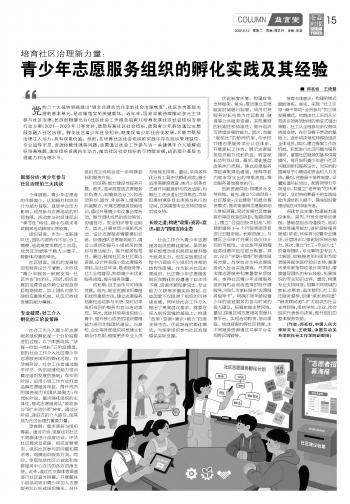 培育社區(qū)治理新力量:青少年志愿服務(wù)組織的孵化實踐及其經(jīng)驗