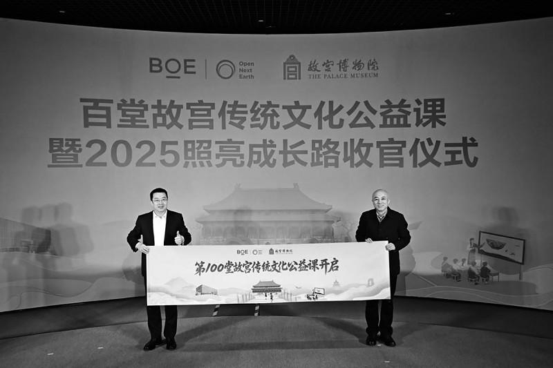 近日,BOE(京東方)“百堂故宮傳統(tǒng)文化公益課”暨2025照亮成長(zhǎng)路收官儀式在故宮博物院舉行。故宮博物院是BOE(京東方)“照亮成長(zhǎng)路”公益項(xiàng)目的重要合作伙伴,雙方自2023年攜手啟動(dòng)“百堂故宮傳統(tǒng)文化公益課”項(xiàng)目,依托BOE(京東方)智慧教育解決方案與數(shù)字技術(shù)弘揚(yáng)中華優(yōu)秀傳統(tǒng)文化,不僅為偏遠(yuǎn)地區(qū)教育高質(zhì)量發(fā)展注入科技活力,還憑借數(shù)字化形式推動(dòng)文化傳承,展現(xiàn)傳統(tǒng)文化歷久彌新的獨(dú)特魅力。 該項(xiàng)目于云南省保山市啟動(dòng),歷時(shí)兩年已走進(jìn)包括陜西西鄉(xiāng)、山西婁煩、四川理塘、青海玉樹在內(nèi)的多地近40所學(xué)校,線上線下累計(jì)惠及學(xué)生超過兩萬名,持續(xù)推動(dòng)“科技+教育+文化”的可持續(xù)發(fā)展,切實(shí)幫助偏遠(yuǎn)地區(qū)學(xué)生獲得近距離感受中華傳統(tǒng)文化魅力的教育機(jī)會(huì)。 活動(dòng)現(xiàn)場(chǎng),故宮博物院院長(zhǎng)王旭東,故宮博物院副院長(zhǎng)朱鴻文,中國(guó)鄉(xiāng)村發(fā)展基金會(huì)副秘書長(zhǎng)丁亞冬,京東方科技集團(tuán)CEO馮強(qiáng),京東方科技集團(tuán)副總裁、首席人事官李洋,京東方科技集團(tuán)副總裁、首席品牌官司達(dá)等嘉賓,以及曾參與項(xiàng)目課程的五所學(xué)校20名師生代表齊聚一堂,共同見證這一重要時(shí)刻,并展望科技賦能文化傳承與青少年教育的未來新篇。 朱鴻文在致辭中表示,“故宮博物院和京東方科技集團(tuán)都是深耕各自領(lǐng)域的實(shí)踐者,我們擁有推動(dòng)文化教育發(fā)展的多元化優(yōu)勢(shì)——企業(yè)有技術(shù)賦能的能力,文化單位有內(nèi)容資源的厚度。我們通過‘文化+科技’的雙重賦能,帶領(lǐng)邊遠(yuǎn)地區(qū)的孩子們?cè)谥腔壅n堂上觸摸歷史脈搏,跨越時(shí)間和空間的限制,近距離感受故宮承載的中華優(yōu)秀傳統(tǒng)文化的獨(dú)特魅力?!?br> 李洋在致辭中表示,“京東方‘照亮成長(zhǎng)路’項(xiàng)目已走過十年,它已超越單一公益項(xiàng)目,成長(zhǎng)為一個(gè)開放、多元、可持續(xù)的公益平臺(tái)。百堂課的收官不是終點(diǎn),而是一個(gè)嶄新的起點(diǎn)。我們期待更多優(yōu)秀的伙伴加入‘照亮成長(zhǎng)路’項(xiàng)目,共同以科技與文化之光,讓優(yōu)質(zhì)的教育資源突破時(shí)空限制,照亮更多孩子的成長(zhǎng)之路?!?br> 丁亞冬在致辭中表示,“京東方作為全球創(chuàng)新型物聯(lián)網(wǎng)公司和全球顯示產(chǎn)品龍頭企業(yè),積極履行社會(huì)責(zé)任,不僅提供公益資金捐贈(zèng),還以其全球領(lǐng)先的顯示技術(shù)和物聯(lián)網(wǎng)解決方案,為‘百堂故宮傳統(tǒng)文化公益課’提供了高質(zhì)量的傳輸與呈現(xiàn)保障。” 儀式現(xiàn)場(chǎng),曾參與項(xiàng)目課程的五所學(xué)校師生代表帶著親手制作的紀(jì)念品依次登臺(tái)發(fā)言,表達(dá)對(duì)BOE(京東方)及故宮博物院的謝意。在儀式結(jié)尾,王旭東與馮強(qiáng)共同上臺(tái)展開卷軸,標(biāo)志著第一百堂故宮傳統(tǒng)文化公益課開啟,也為故宮博物院建院100周年這一重要?dú)v史時(shí)刻增添特殊的紀(jì)念意義。儀式結(jié)束后,故宮工作人員帶領(lǐng)學(xué)生走進(jìn)故宮,在充滿歷史底蘊(yùn)的宮殿中講述建筑與文物背后的文化故事,為孩子們帶來了意義非凡的第一百堂故宮文化課,沉浸式加深偏遠(yuǎn)地區(qū)孩童對(duì)中華優(yōu)秀傳統(tǒng)文化的認(rèn)識(shí)。 除了實(shí)地游覽故宮,BOE(京東方)還安排了豐富的研學(xué)活動(dòng),帶領(lǐng)師生們?cè)谕醺當(dāng)?shù)字藝術(shù)館與京東方歷史展覽館開展研學(xué)。在數(shù)字藝術(shù)館,BOE(京東方)通過高清顯示與動(dòng)態(tài)影像技術(shù)打造出沉浸式文化場(chǎng)景,讓文物“活”起來;在京東方歷史展覽館,孩子們則透過屏幕技術(shù)的演進(jìn),直觀感受到科技發(fā)展的創(chuàng)新力量。在領(lǐng)略科技賦能藝術(shù)魅力之余,BOE(京東方)還帶領(lǐng)師生們走進(jìn)北京的地標(biāo)性景區(qū),親身感受天安門廣場(chǎng)的莊嚴(yán)、頤和園的秀美、景山公園的遼闊。這場(chǎng)研學(xué)之旅,讓歷史與文明不再遙遠(yuǎn),讓文化變得可觸可感,助力孩子們收獲更為鮮活而深刻的文化體驗(yàn)。 依托“照亮成長(zhǎng)路”項(xiàng)目,BOE(京東方)搭建起跨越空間和距離的數(shù)字化平臺(tái),開展10余年來已在10個(gè)省市建成156間智慧教室,累計(jì)受益師生超7萬人,不僅讓偏遠(yuǎn)地區(qū)的孩子們沉浸式感受到文化和科技的力量,也通過豐富的研學(xué)活動(dòng),讓孩子們能夠跨越千里之遙來到祖國(guó)的心臟研學(xué),在心中埋下科技賦能文化的種子。這不僅標(biāo)志著“照亮成長(zhǎng)路”實(shí)現(xiàn)了從“硬件支持”到“內(nèi)容賦能”的深刻跨越,更是BOE(京東方)公益維度的重要升級(jí)。而“百堂故宮傳統(tǒng)文化公益課”的落地,也象征著BOE(京東方)“照亮成長(zhǎng)路”項(xiàng)目全新的開始。 BOE(京東方)持續(xù)以技術(shù)突破賦能文化業(yè)態(tài)革新,讓責(zé)任之光照進(jìn)文化與科技的融合之路。近年來,BOE(京東方)與包括故宮博物院在內(nèi)的多家文化機(
