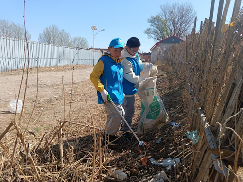 青少年志愿者在清理村莊周邊垃圾