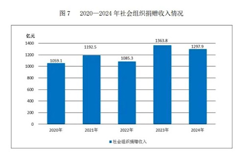 全國(guó)社會(huì)組織捐贈(zèng)收入為1297.9億元