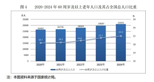 公報(bào)顯示,截至2024年年底,全國(guó)60周歲及以上老年人口為31031萬(wàn)人,占總?cè)丝诘?2.0%,其中65周歲及以上老年人口22023萬(wàn)人,占總?cè)丝诘?5.6%。全國(guó)共有4949.4萬(wàn)老年人享受老年人補(bǔ)貼,其中享受高齡津貼的老年人3752.8萬(wàn)人,享受護(hù)理補(bǔ)貼的老年人93.2萬(wàn)人,享受養(yǎng)老服務(wù)補(bǔ)貼的老年人587.3萬(wàn)人,享受綜合補(bǔ)貼的老年人516.1萬(wàn)人。全國(guó)共支出老年福利資金489.4億元,養(yǎng)老服務(wù)資金253.2億元。