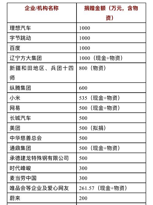 此前,小編對相關(guān)捐贈(zèng)情況進(jìn)行了梳理,(詳見報(bào)道《水災(zāi)捐贈(zèng)匯總|理想汽車1000萬元、字節(jié)跳動(dòng)1000萬元、小米500萬元、網(wǎng)易500萬元……》《水災(zāi)捐贈(zèng)后續(xù):緊急救援與過渡安置并行,專業(yè)人士建議關(guān)注災(zāi)后重建等需求》),除此之外,還有哪些企業(yè)、機(jī)構(gòu)及個(gè)人開展了捐贈(zèng)——