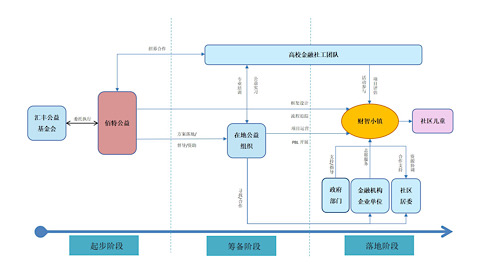 其三,多方協(xié)同的生態(tài)化運營。項目順利整合社區(qū)、社會組織、社會工作者、社區(qū)志愿者、社會慈善資源、學(xué)術(shù)機構(gòu)和企業(yè)等主體資源,構(gòu)建起多方協(xié)同的社區(qū)金融教育公益生態(tài)——政府部門提供政策支持與場地保障,推動項目在6個城市社區(qū)順利落地;企業(yè)方匯豐中國及其企業(yè)公益基金會提供重要資金支持。社會組織上海百特教育咨詢中心(佰特公益)充分調(diào)動自身樞紐角色,負(fù)責(zé)項目藍本設(shè)計、資源整合和執(zhí)行落地,并與北京匯豐公益基金會合力持續(xù)投入產(chǎn)品研發(fā)與專業(yè)師資,為后續(xù)的教具研發(fā)提供有力支持;學(xué)術(shù)機構(gòu)中央財經(jīng)大學(xué)社會與心理學(xué)院則深入項目一線,負(fù)責(zé)參與項目督導(dǎo)、智庫支持和評估監(jiān)測,確保金融教育活動的有效性,并為項目后續(xù)優(yōu)化制定詳細(xì)路線和建議;地方社會組織(如各地公益伙伴)參與項目共創(chuàng)與落地執(zhí)行,幫助招募活動志愿者(如高校學(xué)生、家長等)承擔(dān)引導(dǎo)、陪伴等工作,結(jié)合地方特色孵化出“小鎮(zhèn)兒童管委會”、“中草藥創(chuàng)業(yè)”等本土化實踐形式;各地社區(qū)則為活動提供場地并鏈接鄰里資源;家庭通過資源反哺與參與反饋,為項目提供持續(xù)改進動力。這種機制的創(chuàng)新在于主體角色間的互補而非簡單疊加,形成教育合力(圖為匯豐兒童財智小鎮(zhèn)項目多元主體協(xié)作圖)。