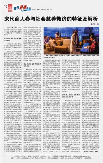 宋代商人參與社會(huì)慈善救濟(jì)的特征及解析