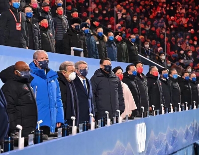筑夢冰雪,同向未來。2022年2月4日晚,舉世矚目的北京第二十四屆冬季奧林匹克運(yùn)動(dòng)會(huì)開幕式在國家體育場隆重舉行。國家主席習(xí)近平出席開幕式并宣布本屆冬奧會(huì)開幕。中華文明與奧林匹克運(yùn)動(dòng)再度攜手,奏響全人類團(tuán)結(jié)、和平、友誼的華美樂章。 李克強(qiáng)、栗戰(zhàn)書、汪洋、王滬寧、趙樂際、韓正、王岐山等黨和國家領(lǐng)導(dǎo)人,國際奧委會(huì)主席巴赫,以及來自世界各地的領(lǐng)導(dǎo)人和貴賓出席開幕式。 夜幕下的國家體育場華燈璀璨、美輪美奐,這座以鳥巢造型聞名于世的建筑,即將創(chuàng)造歷史,成為世界上首座舉辦過冬奧會(huì)和夏奧會(huì)“雙奧”開幕式的體育場館。 19時(shí)15分許,來自世界各地的國家元首、政府首腦、王室成員和國際組織負(fù)責(zé)人等貴賓陸續(xù)抵達(dá)。此時(shí)的金色大廳流光溢彩,充滿著春節(jié)喜慶氣氛和冬奧激情活力。 開幕式正式開始前,國家體育場氣氛熱烈。伴隨著歡快的音樂,來自北京、河北兩地的群眾來到場內(nèi),以質(zhì)樸而火熱的廣場舞表演笑迎八方賓朋。場地上巨大的“?!弊?,營造出中國年的喜慶氛圍。大屏幕上,來自河北張家口、黑龍江哈爾濱、江蘇南京等國內(nèi)10座城市的群眾,向世界展現(xiàn)著中國“三億人參與冰雪運(yùn)動(dòng)”的熱忱和激情。聯(lián)合國秘書長古特雷斯也發(fā)表了視頻致辭。場內(nèi)、場外,中國、世界,共同唱響“一起向未來”的冰雪歡歌。 19時(shí)57分,體育場中央上萬平方米冰雪晶瑩的巨幅地屏上出現(xiàn)“過年好”的中英文字樣。在《和平——命運(yùn)共同體》的樂曲聲中,習(xí)近平和夫人彭麗媛同巴赫等走上主席臺(tái),向觀眾揮手致意。全場響起長時(shí)間熱烈的掌聲和歡呼聲。 2月4日,恰逢中國農(nóng)歷二十四節(jié)氣中的第一個(gè)節(jié)氣“立春”。20時(shí)整,開幕式倒計(jì)時(shí)表演在中國傳統(tǒng)歷法的時(shí)光輪轉(zhuǎn)中開篇,大屏幕上依次閃現(xiàn)二十四節(jié)氣,全場觀眾隨著數(shù)字變換齊聲呼喊:10、9、8、7、6、5、4、3、2、1……在一片歡呼聲中,體育場中央地屏上,一輪明月升起,翩翩彩蝶飛舞,蒲公英的種子飛向空中,絢麗的焰火點(diǎn)亮鳥巢上空,綻放出“立春”的中英文造型,在冬日傳遞著春的消息。(下轉(zhuǎn)04版) |